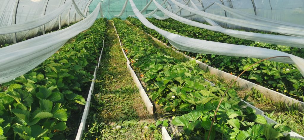 Plus de tunnels : Sur nos 2500m2 cultivés (planches de culture sans passe-pied), nous sommes passés de 33% de tunnels à 50% de tunnels, en installant des tunnels sur 3 jardins de plein champ existants. Nous avons ainsi augmenté notre production, et pour la 1ère fois nous avons commercialisé nos légumes tout l’hiver dans notre magasin de producteurs (La Charrette à Crest) et sur notre marché du mercredi à Die.